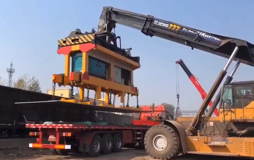 龍門吊集裝箱貨車上吊鋼板用起重電磁鐵吸盤視頻展示