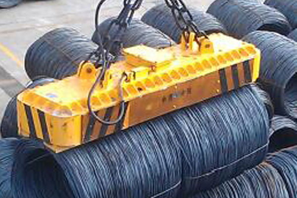 吊運(yùn)時(shí)不需要使用鋼絲繩或C形吊鉤,盤園只占用極小的空間,占空間率高且不易損傷盤圓,其特殊磁極適用于不同直徑的盤圓,電磁鐵的選擇取決于盤圓的長度,如電磁鐵是夠長,則一次可沿長度方向吊運(yùn)幾卷盤圓,盤圓排列長度只能在電磁鐵長度范圍內(nèi)。