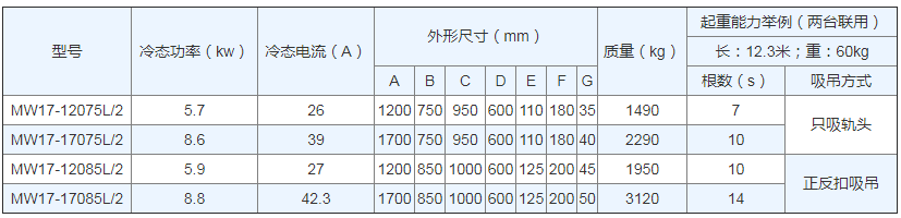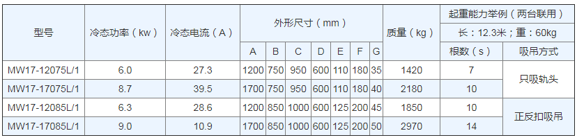 MW17起重電磁吸盤運(yùn)用獨(dú)特的“︻”型磁路,雙線包結(jié)構(gòu),具有散熱好、透磁深??傻踹\(yùn)重軌、型鋼、異形坯等。有常溫型和高溫型。多采用兩臺或多臺聯(lián)吊。