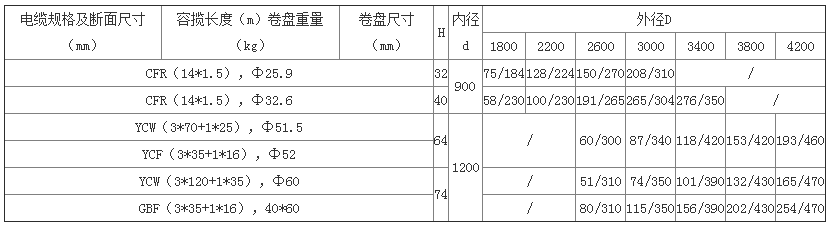 注:1.D-卷盤外徑,h-卷盤安裝高度