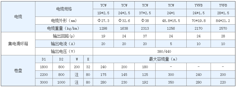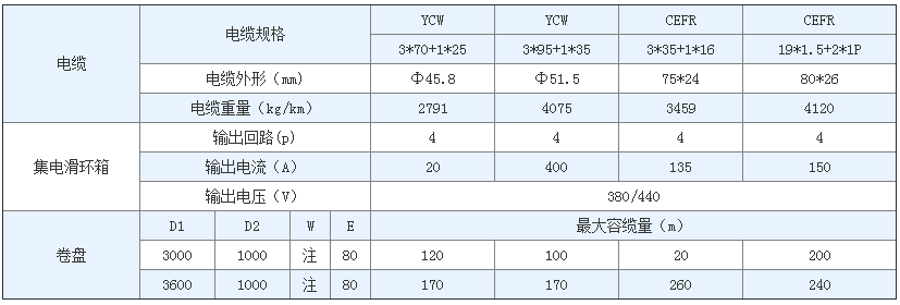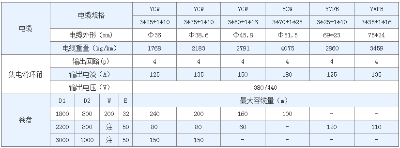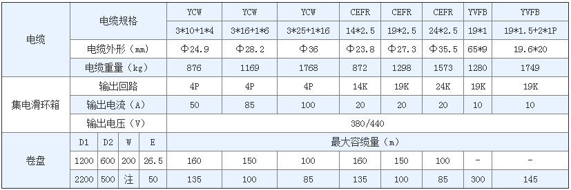 4、控制用電纜卷筒,每增加一相,卷筒總長相應增加25mm。