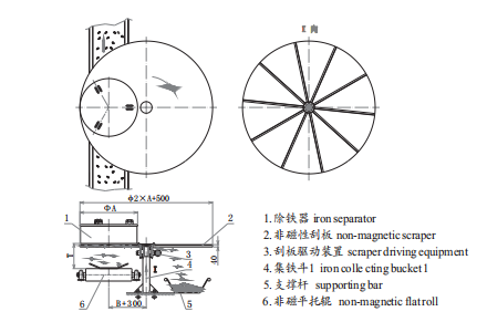 現(xiàn)有的自卸式除鐵器大都是帶式除鐵器或為程控式盤式除鐵器,其中帶式結(jié)構(gòu)復(fù)雜且皮帶容易被吸附上來的礦渣、廢料中的尖銳鐵器劃傷,導(dǎo)致皮帶更換頻繁,盤式電磁除鐵器控制復(fù)雜。本系列除鐵器最大優(yōu)點就是被吸鐵件與除鐵器本體不接觸。