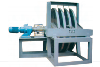當(dāng)電機帶動浸入料漿的磁盤體轉(zhuǎn)動后,料漿中的鐵磁物質(zhì)立即被吸附到磁盤的兩側(cè),磁性物料隨磁盤的轉(zhuǎn)動被刮板和壓力水將物料沖送到卸料槽至精礦槽內(nèi),流入下道工序,以此反復(fù)形成磁選全過程。