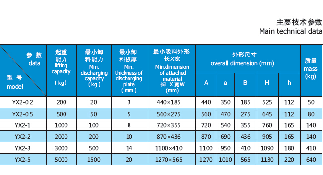 YX2系列永磁吸吊器內(nèi)部采用鐵氧體磁性材料制作,它利用棘輪棘爪機(jī)構(gòu),通過行車的起升一起控制頂桿,自動完成吸、放料工作。具有不需勵磁電源,操作方便,使用安全等特點(diǎn)。它廣泛適用于工廠,碼頭,倉庫,交通運(yùn)輸部門吊裝搬運(yùn)短而厚的鋼板。特設(shè)氣隙調(diào)整桿,可方便的調(diào)整磁力大小。但它在卸料狀態(tài)下,工作底面仍帶磁性。